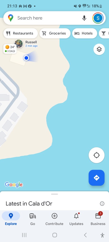 Cala Egos – The night before Evans funeral as a distraction I booked a holiday for after Owens exams. Evan would have loved the food, sangria and sites. His cap also came with us.